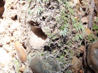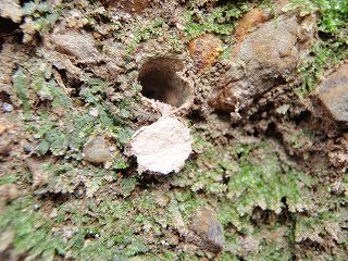 【左】トタテグモの巣:土手     【中】同左:土手     【右】同左:樹皮