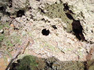 ご神木の幹にあるキノボリトタテの巣と小道の脇の斜面にあるカネコトタテグモの巣を観察。カネコトタテグモの巣は例年より多く発見することができた。また、キノボリトタテグモの巣は、別の巨木でも見つけることができた。鳥は、森の中でアカゲラのドラミングを聞くことができた。オオタカの声、姿もバッチリ確認する。