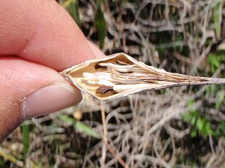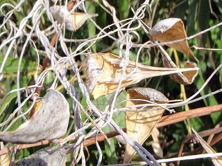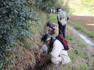 田んぼの脇の水たまりでタニシ、ヒメタイコウチ、イシガメ発見。ガガイモミニ版のコバノカモメヅルの種子、カマツカ、イズセンリョウなども観察する。
