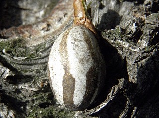 【左】イラガの繭 【中】イラガのサナギ 【右】ヤママユの繭