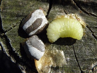 朽ち木以外:イラガ(繭)、ナナホシテントウ、マダラヨコバイ?、ユスリカ類、フタホシヒラタアブ、オオクロバエ、ハエ類数種、ケバエ類?(幼)、モリチャバネゴキブリ(幼)、ミノムシ、イラガ、ヤママユ、アメリカジガバチ(外来)の巣、チョウを期待しましたがだめでした。