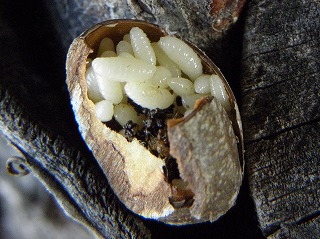 朽ち木:コクワガタ、キマワリ、カブトムシ、カミキリムシ、クロウリハムシ、コメツキムシ?、カシルリオトシブミ?、ヒゲジロハサミムシ、ハラビロカミキリの卵塊、ゲジ
