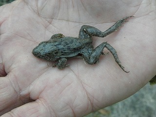【左】何かいそう…でも、ここはいなかった 【右】ここでは冬眠中のカエルを発見