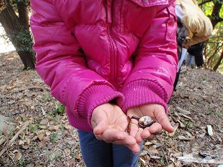 林の中では朽ち木をやさしく分解しました。コクワガタやキマワリなどの幼虫が出てくると手のひらに乗せて、「こんにちわ」とあいさつをしました。また、今回はコクワガタの成虫のオスとメスも出てきました。きょうは、おとなも子どもも[林]と[朽ち木]と[昆虫]の関係が少し理解できたかも知れません。