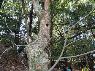 海岸辺りの高い煙突からの煙は真上に上っていくような風がゆるやかなで晴れでした。しかし、気温は低く庭の池には4mm位の氷が一面に張っており、氷でひととき遊びました。公園の庭には朽ち木はありませんので、いつものコースで公園から出ることになります。途中で冬眠中のカエルや水中でゆっくり歩いている亀さんをみたりしながら、朽ち木のありそうないつもの林に到着です。