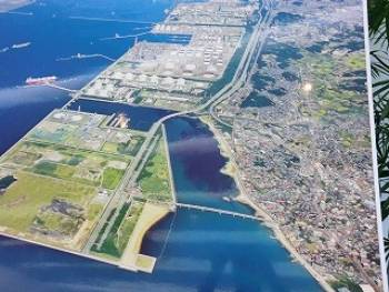 東邦ガス工場の南5区埋立て地の空からの写真