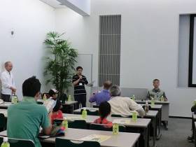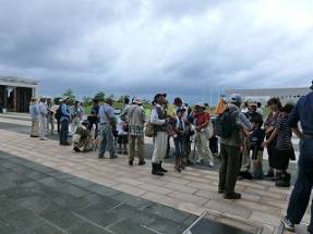出発前のグル−プ分けと注意点の説明 ビオトープのテラスにて