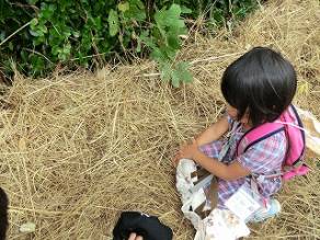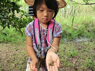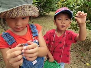 この枯れ草の中にコウロギがいるよ ほらー コウロギ捕まえた