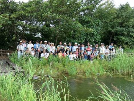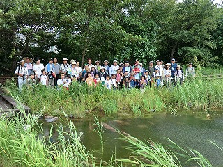 ビオトープを前に集合写真