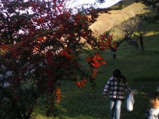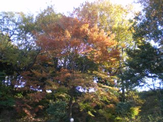 【左】マツボックリ発見     【右】紅葉と黄葉