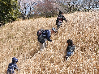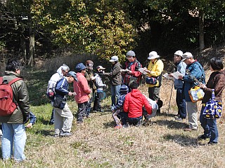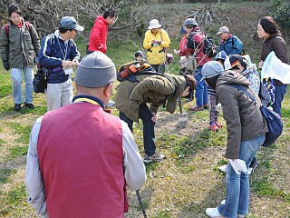 風の強い、とても寒い日でしたが、沢山の野草や草花を見る事ができました。日あたりのよい草原では虫さんにもあえました。梅の館を出発し、梅林を通り、田んぼの近くまで観察をしながら歩きました。風のない斜面の下で分かちあいをして解散としました。(記:山田絹)(写真・田中和)