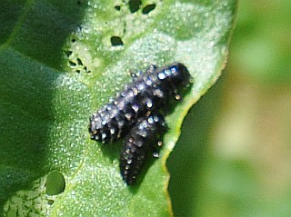 【左】ナナホシテントウ 【中】コガタルリハムシ 【右】キリギリス幼虫