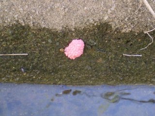 【左】スクミリンゴガイの卵           【右】スクミリンゴガイ