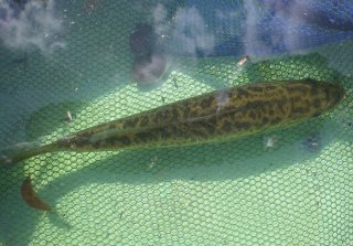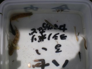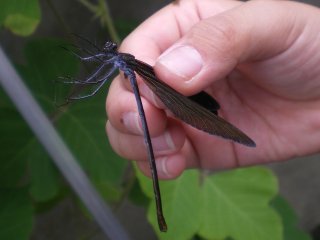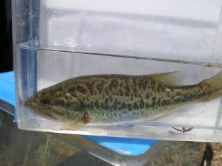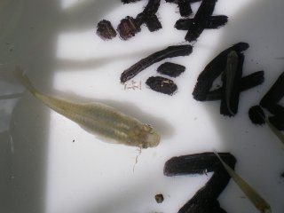 【左】ハグロトンボを捕まえた            【中】ブラックバスの背            【右】ハゼの仲間と