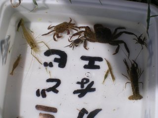 テナガエビ、ミゾレヌマエビ、アメリカザリガニ、モクズガニ、クロベンケイガニ