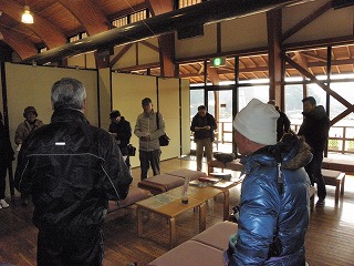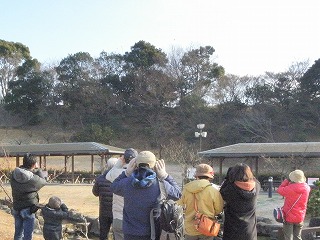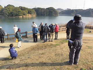 朝、張っていた氷が昼になってもとけない程、とても寒い一日でした。館内で観察についての説明の後、遊歩道を池の方に進みました。鳥を探して上を見ていると雲の端が虹色に光っていました。一同感激してしばらく見つめていました。(私見ですが全円形の虹に見えました・・大野)池の中ではマガモのペアの求愛行動が観察できました。池を離れるとシジュウカラの群れが梅の木の間を飛びまわっていました(記・山田絹 )