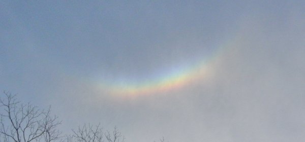 虹。彩雲(さいうん)か環天頂アーク(かんてんちょうアーク)どちらかの現象