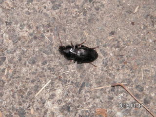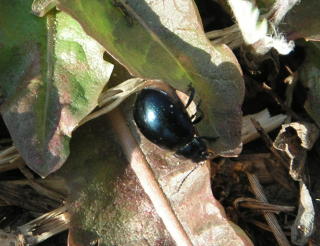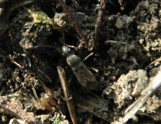 【左】ゴミムシ類(側溝の落ち葉の下にいました。しばらくして動き始めました)