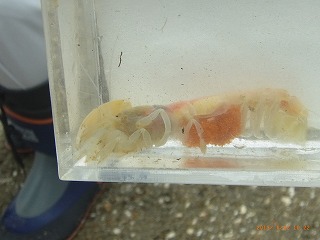 ・ 砂を掘って生き物を探す