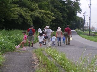 地域文化センターから30分かけて田んぼや水路の様子を観察しながら神田川へ向かった。田んぼの中にコサギが3羽餌を啄んでいて、上空をセッカとセキレイが飛んでいた。神田川に着くと館長さんと平木さんがテントとブルーシートを準備していて下さり、猛暑の中大変助かった。今年も30p位のウナギを浅井さんが捕らえると、参加者はがぜんはりきりだした。2匹目のウナギは15p位であった。魚やエビ、カニ等を全員が捕らえることができた。クサガメが見つかると子供達は大騒ぎ。分かち合いで金内さんの説明を聞き、みんなで捕らえた生きものをいつもどおり川へ帰した。ウナギを帰すときは何となく名残惜しそうだった。絶滅を危惧されているウナギがどの川でも見つかるのは、分かち合いの後こうして川に帰しているからだろうか?また来年も見つかるといいなあ! この時、今まで見たことのないエビが見つかり、金内さんが碧南水族館で調べていただいたところヒメヌマエビだったそうです。(記:吉房)