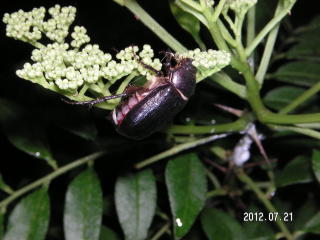 時間があったので公園を一周していたら集合時刻ぎりぎりになってしまい、榊原靖さんと二人で急いで旧市営プール跡地東側に灯火装置をセットしました。結局20分遅れでナイトハイクに出掛けました。ナイトハイクは灯火装置の南の林へ行きました。林の中でカブトムシ、クワガタムシ、カナブン、コメツキムシなどが次々に見つかり、大いに盛り上がりました。ナイトハイクを堪能して灯火観察場所へ戻りました。灯火に来た虫はコガネムシやハネカクシ、ガ、ウンカ、ヨコバイ、ユスリカなど地味な虫ばかりで皆がっかり、来た虫の説明をして21:00前に観察会を終了しました。(記・平松俊 )