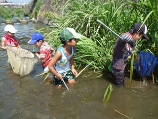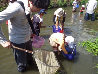 しかし、暑い日差しも川の中では余り暑さを感じることなく、参加者のがんばりで結果的には種数や捕獲量もたくさん捕れてお互いびっくりしたものでした。