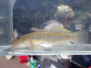 【左】人が歩くとすぐに濁ってしまう川だけど… 【中】タイコウチ 【右】ゴクラクハゼ