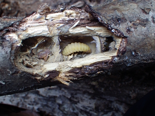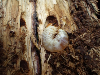 【右】部屋の仕切りからクマバチの幼虫?(これは初めての写真です)