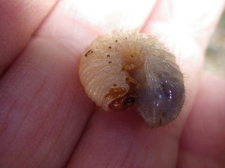 【左】オカダンゴムシ  【中】シロアリ。赤ちゃんは1mm以下でした  【右】アオハナムグリの幼虫?
