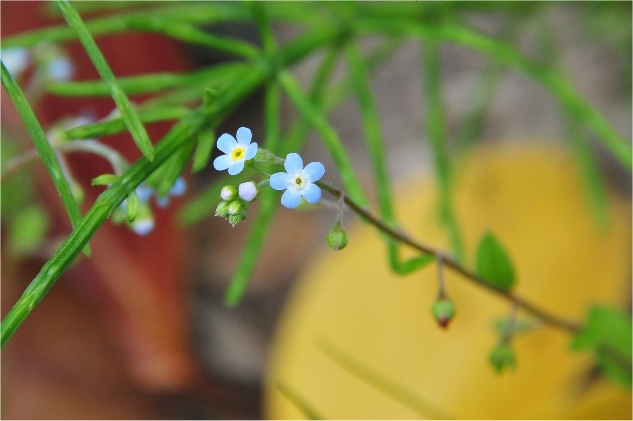 【左】クロウリハムシ 【中】クロバイのつぼみ。もうすぐ開花 【右】タンポポの茎でいたずら遊び。