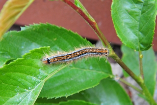 【左】ヨコヅナサシガメの脱皮中 【中】脱皮後しばらくはこのように赤い 【右】オビカレハの幼虫
