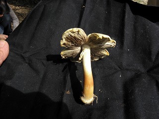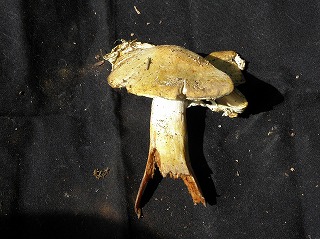 【左】キシメジの仲間? 【中】キクバナイグチ(食)老菌 【右】シロオニタケ(毒)
