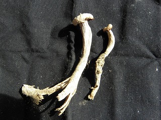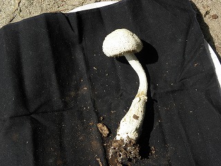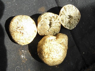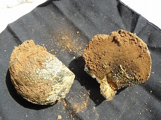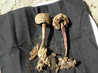 【左】最後に記念写真、まあまあの成果でした。 【右】ノウタケの老菌