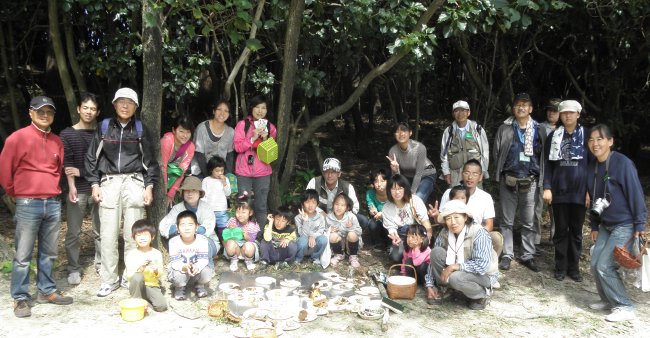 しばらく雨が降っていないためキノコの発生が期待できない環境でした。前日、知多市の「梅の館」では、硬質菌と老菌ばかりでした。ここ「高根の森」は、森が広く樹木の種類も「梅の館」より多くありますので少し期待しました。 キノコに興味がある参加者がたくさん集まりました。参加者の皆さんは、林内をそれぞれ思いの場所を楽しく散策し、それぞれキノコを採集し、集合場所に集まりました。結果はやはり、腹菌といわれる饅頭型のキノコと硬質菌といわれるサルノコシカケの中がたくさん採集できましたがハラタケ目とわれるキノコ型のキノコは余りありませんでした。やはり、今年はキノコの発生がずれているか?不作?(記・降幡)