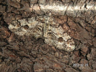 【右】 シロフフユエダシャク?(サクラの木にとまっていました。フユシャクの一種で間伐が行われてからめったに見なくなりました)