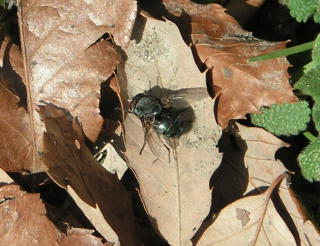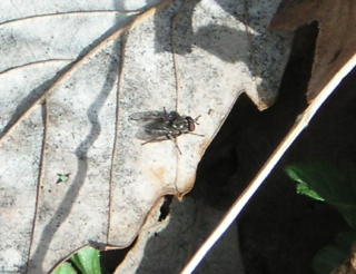 【左】ヨツコブゴミムシダマシ?     【中】コガシラナガゴミムシ(側溝の落ち葉の下にいました)         【右】ハエ類(日がさしたら出てきました)