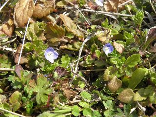 ヒメオドリコソウ、オオイヌノフグリ、ホトケノザ、カラスノエンドウの新芽