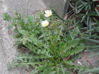【左】温暖化か?白花タンポポ   【中】受粉すると雄しべの軸がピンクになります   【右】イチョウの雄花の芽吹き。例年より早い