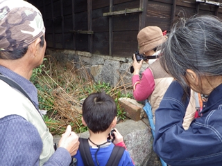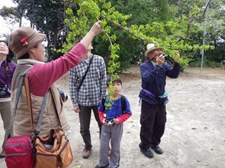 雨が降り出す心配と爆弾低気圧による風の中、生路公民館に集合して神社を回り、社寺林や住宅街樹木の観察をしました。
