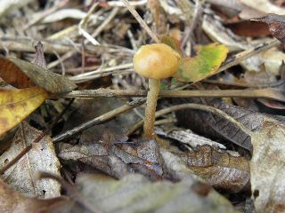 台風27号28号の迷走翌日。朝方にかけて大雨の予報に今日は雨のため中止かと思って集合場所に行くと予定通り参加者ゼロ。小雨模様の中、富士見台の様子だけ見て帰ろうか、と3人で車から外へ。東浦高校の校庭も少し色づき始めていた。階段回りのツリガネソウを覆いそうな雑草や雑木の枝を払っているうちに西の方から青空が見えだしてきた。アケビだけでも見て帰ろうか、とだれからともなく言い出し、そういえば、東和荘の回りがよいということだからそこへ行ってみようと、来年度の観察地の下見もかねて出かけた。東浦町が散歩道をかねて飛山池の周り半周を整備したところで、いい感じだから来年はここも観察地に加えようということになった。ドングリが絨毯の用に落ちているところやアケビや、雨後のキノコ類も見られ、駐車場や動線を考えながらの下見となった。ただ、残念なことに、観察路が途中で切れていることである。今後、池を一周できるように整備していただきたいと思った。(記・竹内秀 )