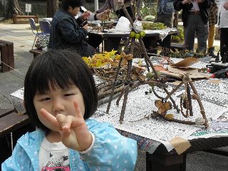 【左】親子で工作。    【中】名古屋から参加してくださいました。竹の枝をつかってリース     【右】ママの手元に注目!