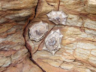 タマガイ、魚のうろこ、ウニ、タヌキブンブク、ムカシブンブク、スナモグリ、ノジュール、サザナミソデガイ、キララガイ、マレティア、ツキガイモドキ、リュウグウハゴロモ、タテイワツキガイ、クルミガイ、ツムバイ、マルフミガイ、生痕(生き物が住んでた跡)、植物の化石