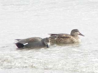 晴れて穏やかな、この時期としては断然暖かい日に恵まれた今日の観察会。波返しを越え、護岸堤に降りて海面を見ると、カモの類がビッシリ。おっ!今年は多いぞ」とうれしくなる。