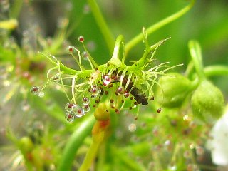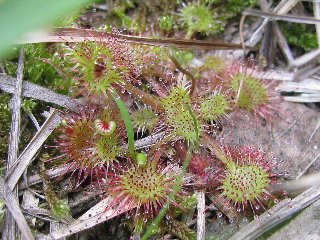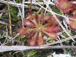 【左】コモウセンゴケ          【中】コモウセンゴケの花          【右】モウセンゴケ