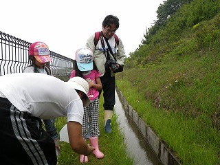 9時30分に公民館Pに集合し、小鈴谷の愛知用水沿いに車で移動しました。  水資源開発公団と交渉をして、用水路上部の側面を一部残してもらったおかげで、イシモチソウの白いお花を今年もたくさん見ることが出来ました。コモウセンゴケもピンクの小さな花をつけていましたが、モウセンゴケはまだ咲いておらず、開花はもうすこし先のようでした。子供たちも、湿地の植物をみたり、昆虫やカエルを追いかけて、用水路横の側溝でタモでザリガニやおたまじゃくしを捕まえることができました。今年も無事に食虫植物が見ることができ楽しいひと時を過ごすことができました。普段目にする何気ない景色にも、いろんな動植物が見られる良い季節なので、機会を見つけて、身近な生き物を探したり、よく観察してみたいですね。(記・斉上)