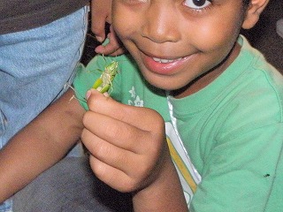 【左】セアカヒラタゴミムシ 【中】虫を持ってご機嫌 【右】トノサマバッタ?幼虫