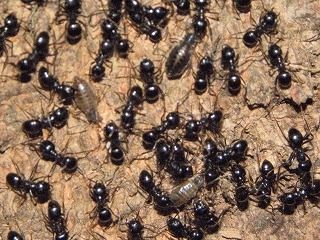 アオマツムシがうるさく鳴く中、南側ではいつもどおり大きなマダラカマドウマが何匹も見つかりました。しかし観察会の常連が多いのかあまり気味悪がらず、むしろ木の幹に群れるアリの大群に興味津々でした。