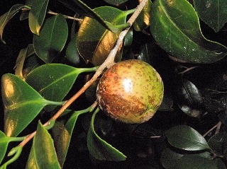 【左】ヤマモモ (社叢外縁) 【中】ウバメガシ 【右】ヤブツバキ(実)