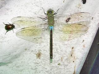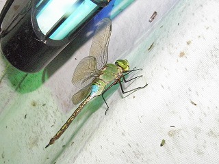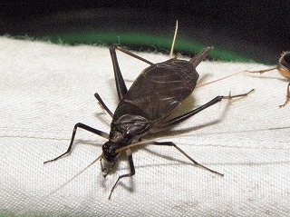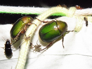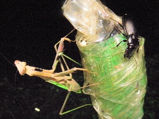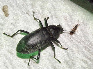 灯火にはコガネムシ、ゴミムシ、ウンカ、ヨコバイ、ハネカクシ、カメムシ、コオロギなど非常に多くの虫が集まり、特にゴミムシ、コオロギは気持ち悪いほどでした。またギンヤンマが灯火に来るとは驚きました。集まった虫を皆で観察し、20:40頃観察会を終了しました。 記・平松俊)