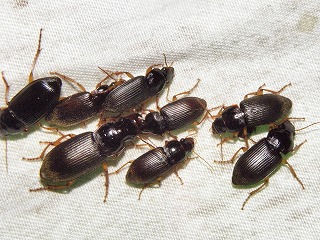 【左】セアカヒラタゴミムシ 【中】ゴミムシ類 【右】ゴミムシ類の集団